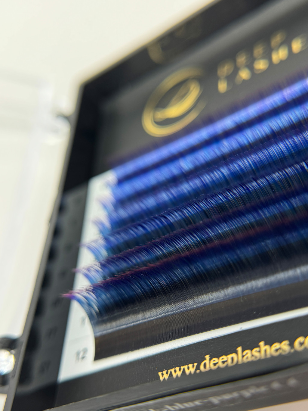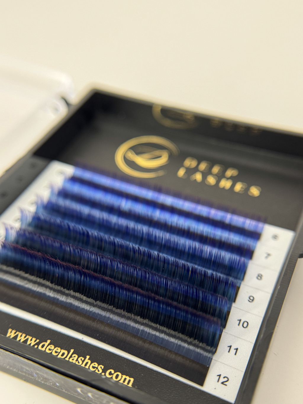 Deep Lashes 7 soros – MIX • Fekete / Kék / Lila Tricolor • M ív • 0.07 (6-12 mm) – Színes Műszempilla