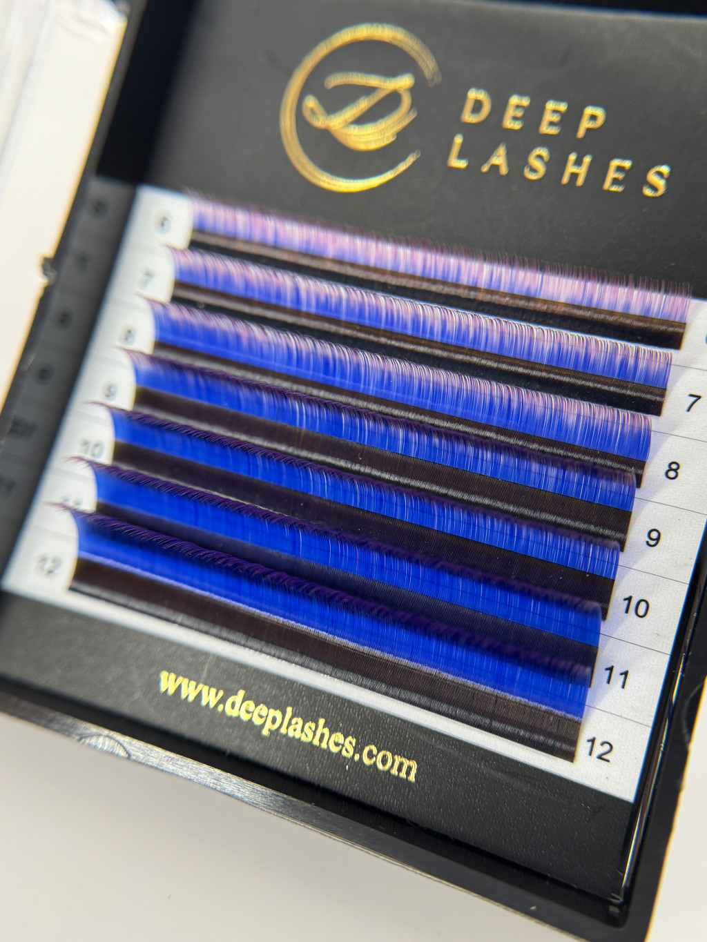 Deep Lashes 7 soros – MIX • Kék / Rózsaszín Ombre • 0.07 (6-12 mm) – Színes Műszempilla